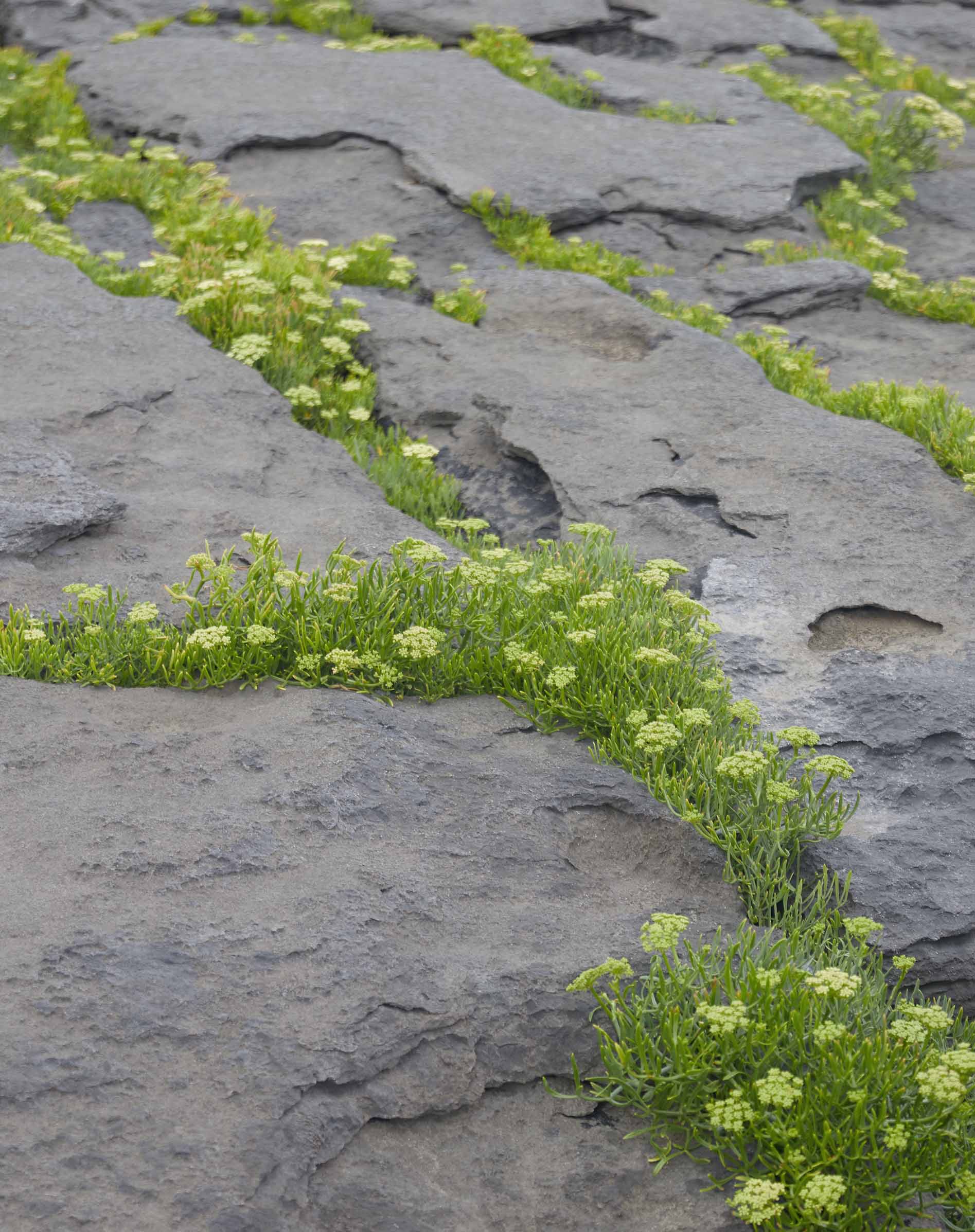 Here, nature is full of contrasts, from dark rocks chiseled by the sea to tall grass blowing in the wind, the flora a combination of plants coexisting alongside algae.