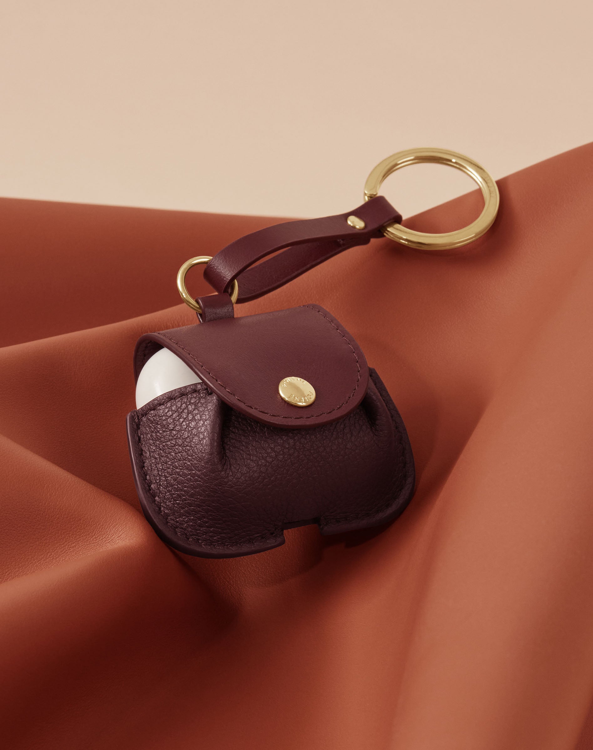The “Number One” Airpods case reflect the iconic codes of the brand’s famous bag, with hand-stitched folds and a half-moon flap. It closes with an engraved snap and is held together by a key ring.