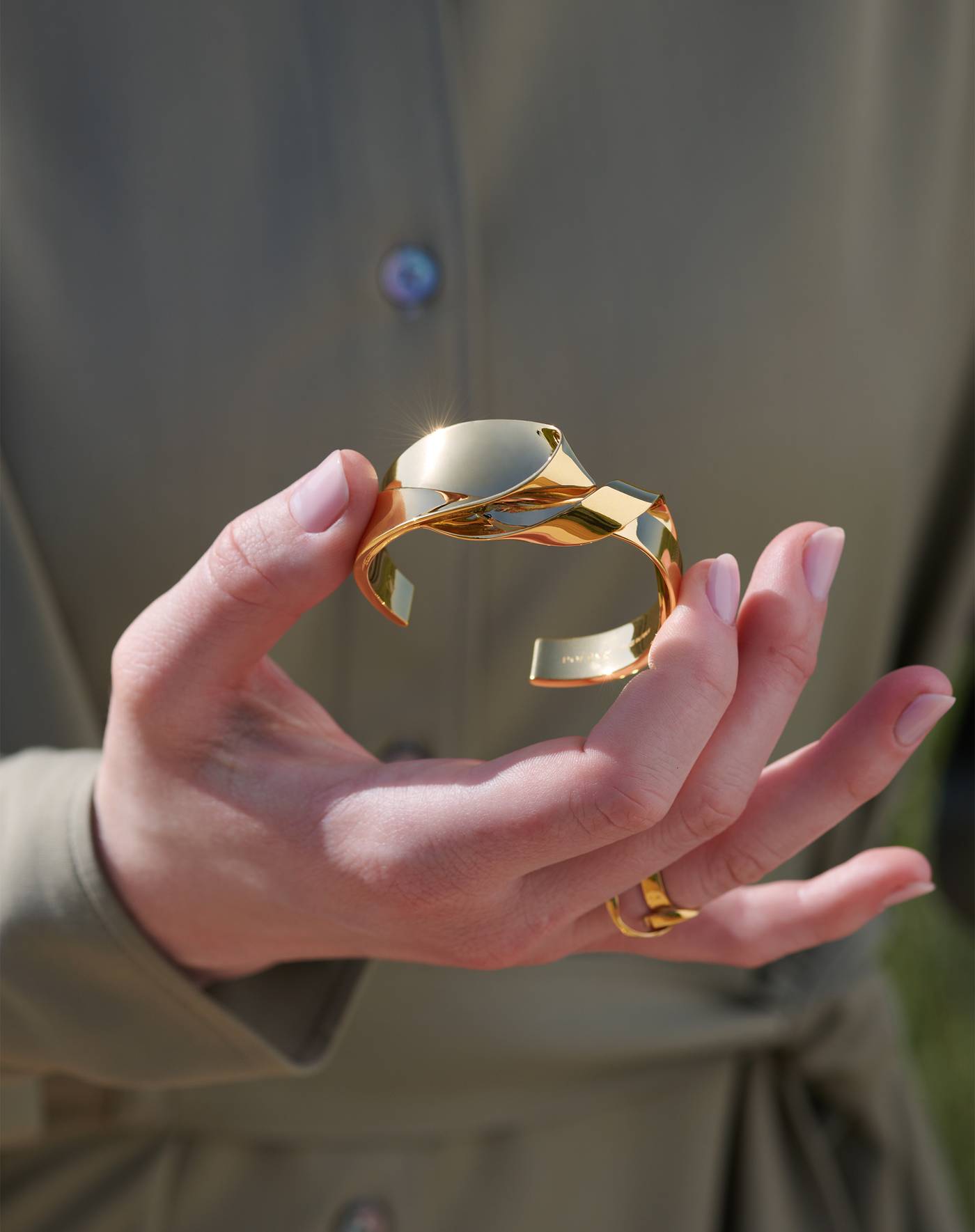 The exploration of organic forms and the pursuit of a refined yet iconic style establish a clear link with Polène leather goods. The jewelry line adheres to the same high standards for unique, inventive designs, noble materials, and skilled craftsmanship.