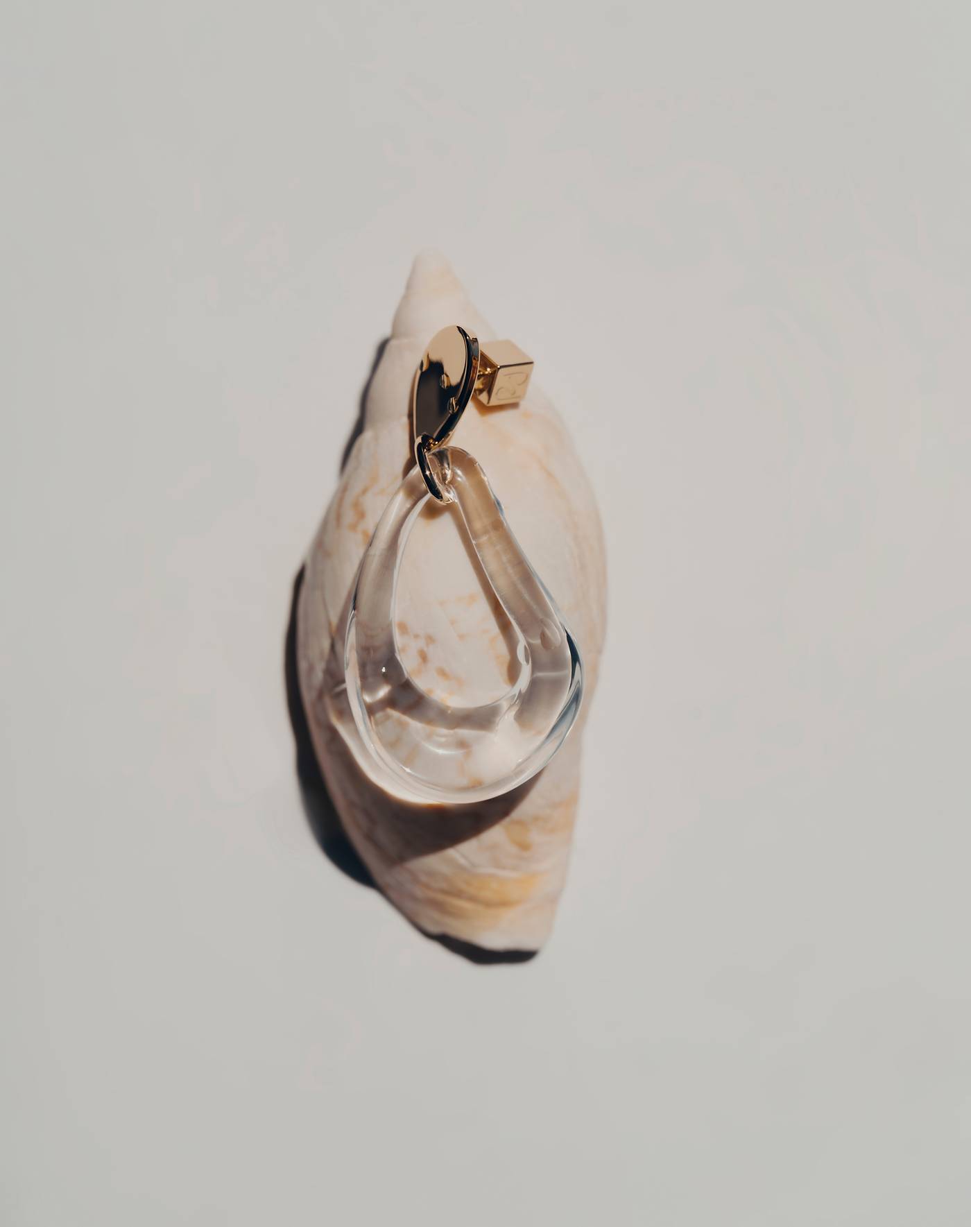 Inspired by water’s organic shapes, the collection cleverly sculpts perfect teardrops from glass featuring curved or hollowed-out shapes. The 24-carat gold-plating contrasts with the transparency of the glass, achieved through careful hand polishing. Meticulous design work brings these two components together in perfect harmony. The translucent hue of the glass comes from the pairing of two shades to create the desired brightness, while the smoked glass edition subtly blends red and dark purple into brown which reflects in different lights.