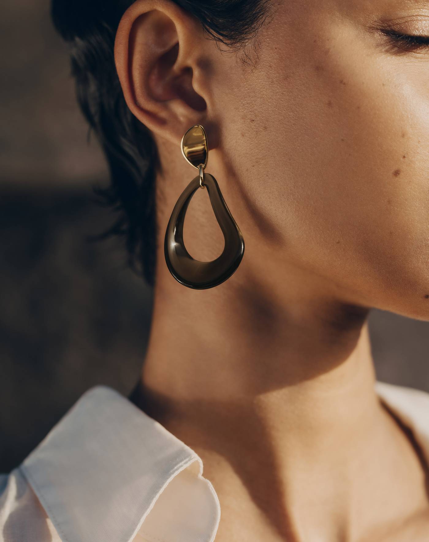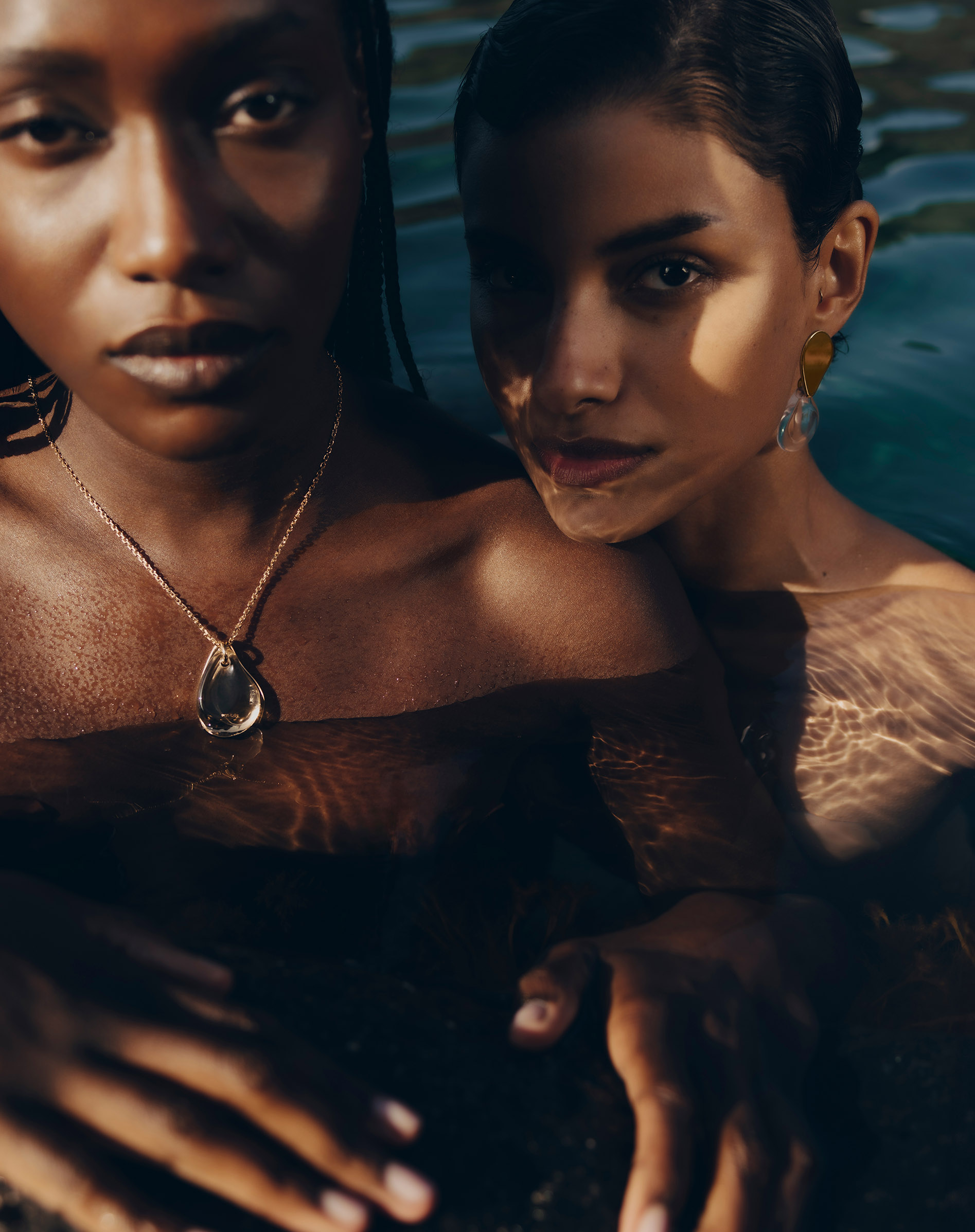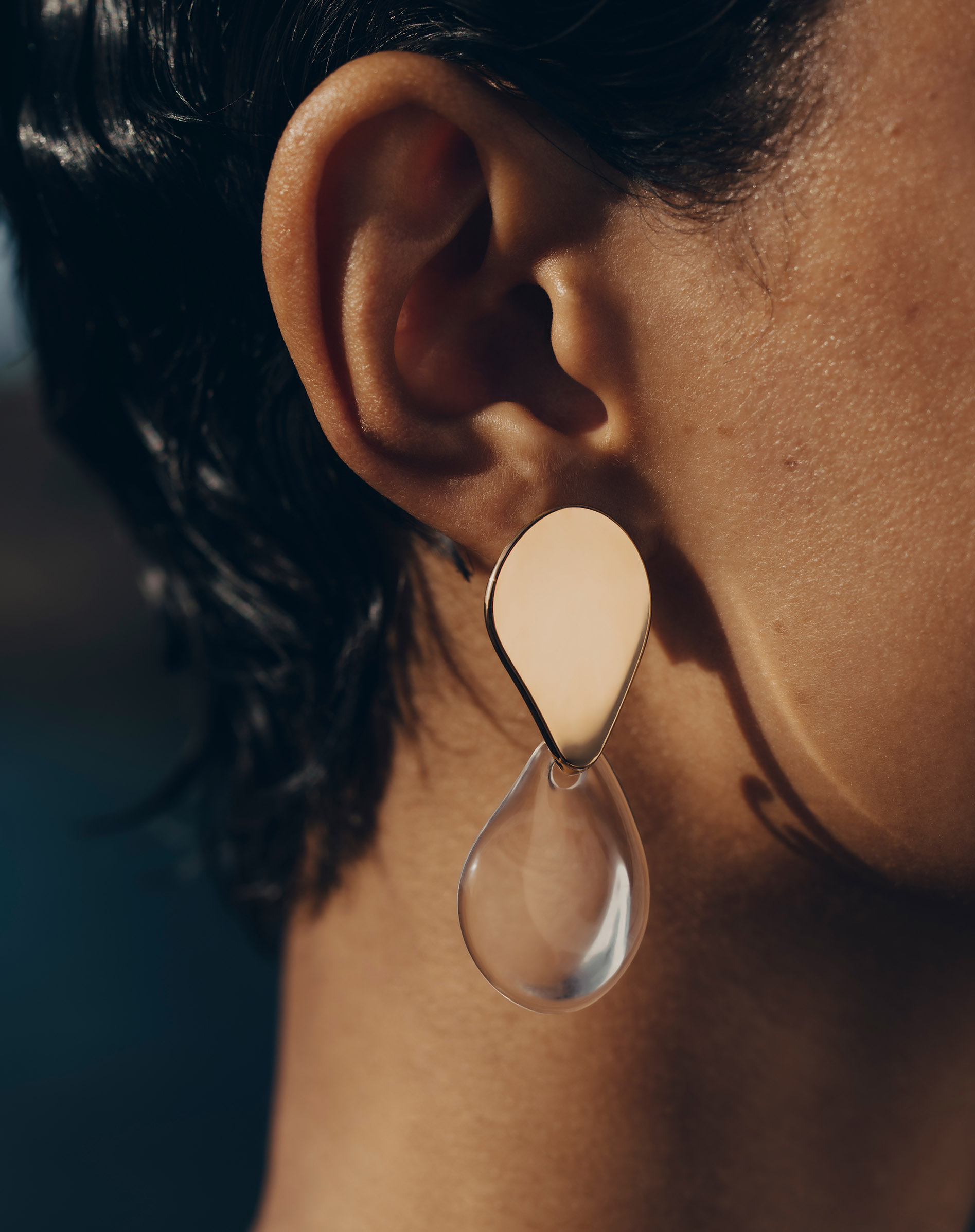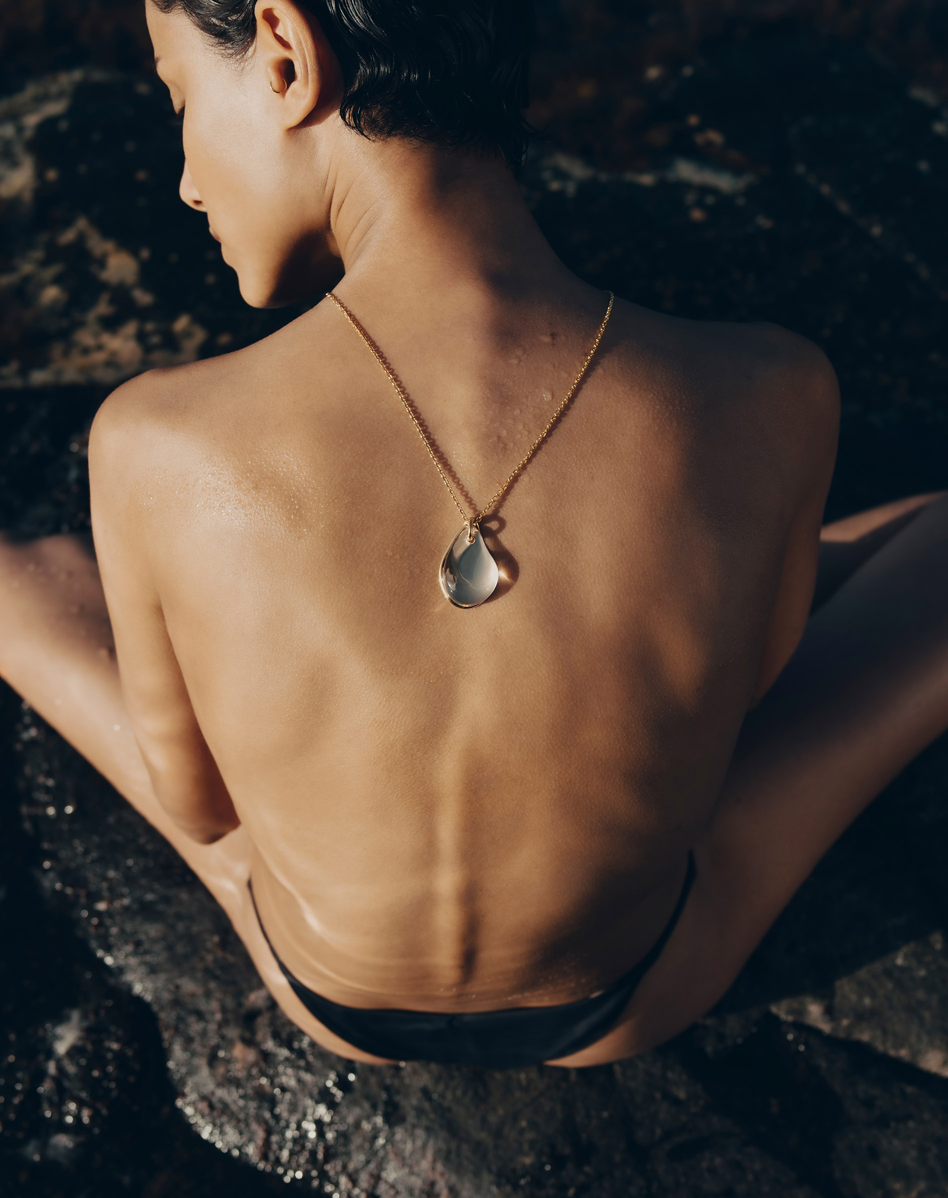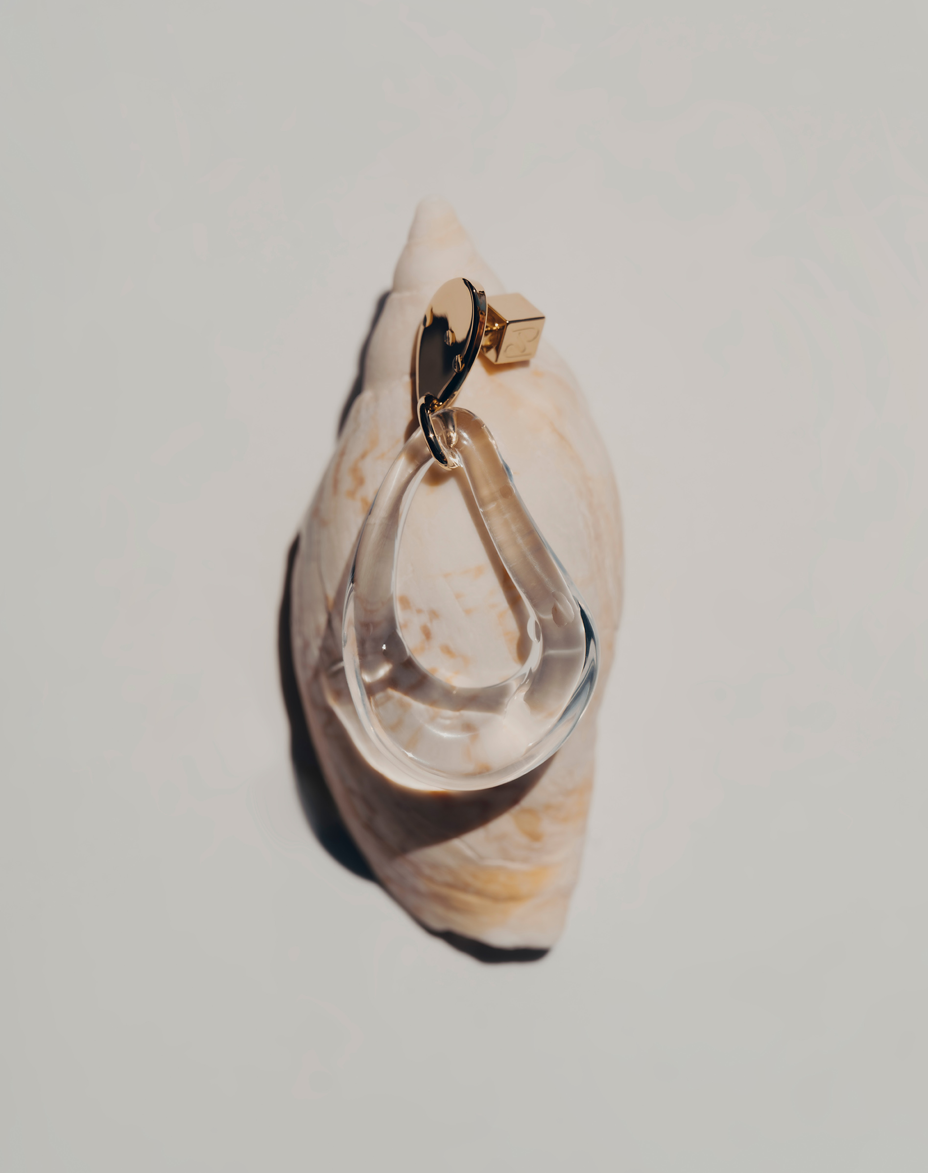 Inspired by water’s organic shapes, the collection cleverly sculpts perfect teardrops from glass featuring curved or hollowed-out shapes. The 24-carat gold-plating contrasts with the transparency of the glass, achieved through careful hand polishing. Meticulous design work brings these two components together in perfect harmony. Each piece is carefully assembled by artisans in a workshop located near Florence, Italy.