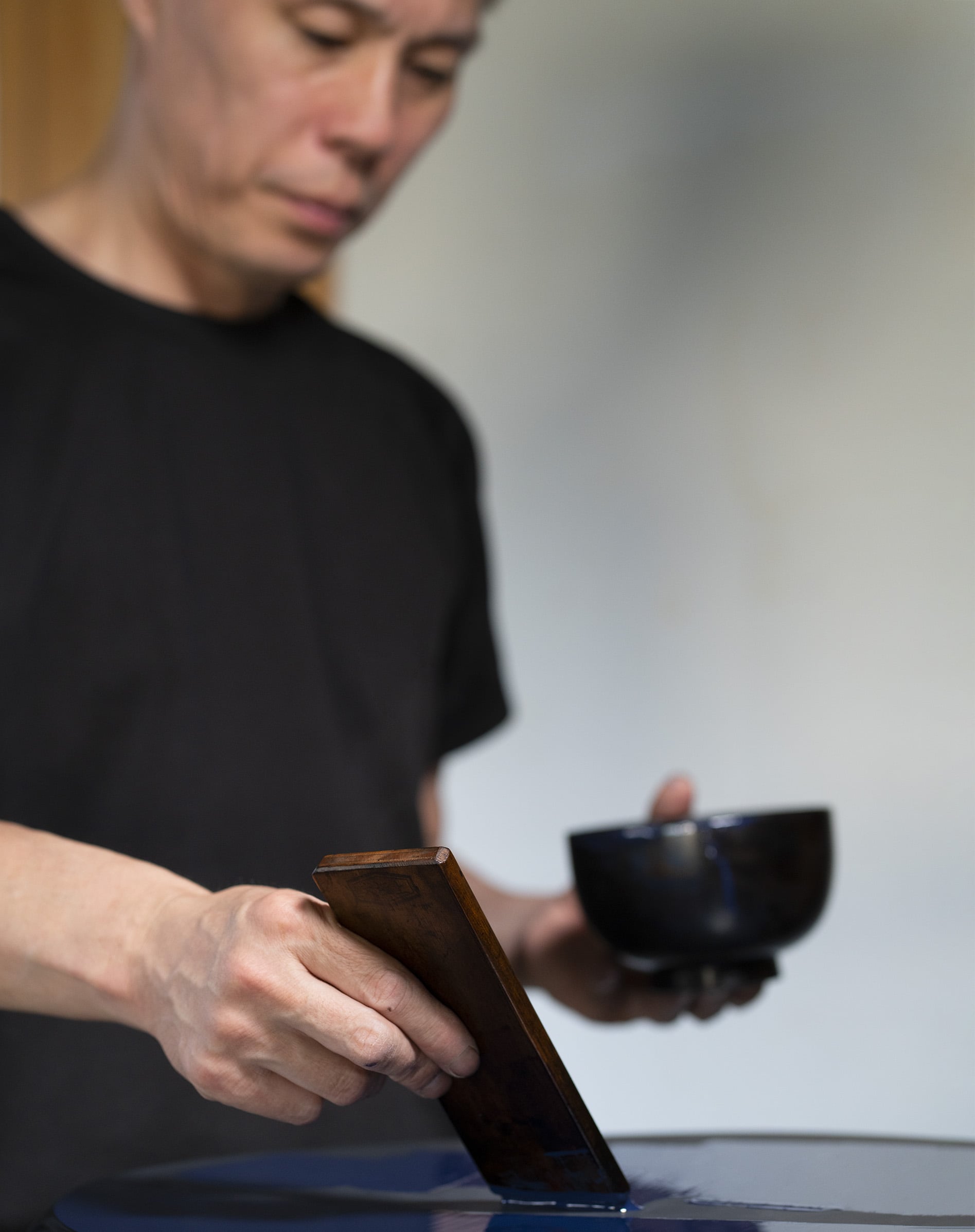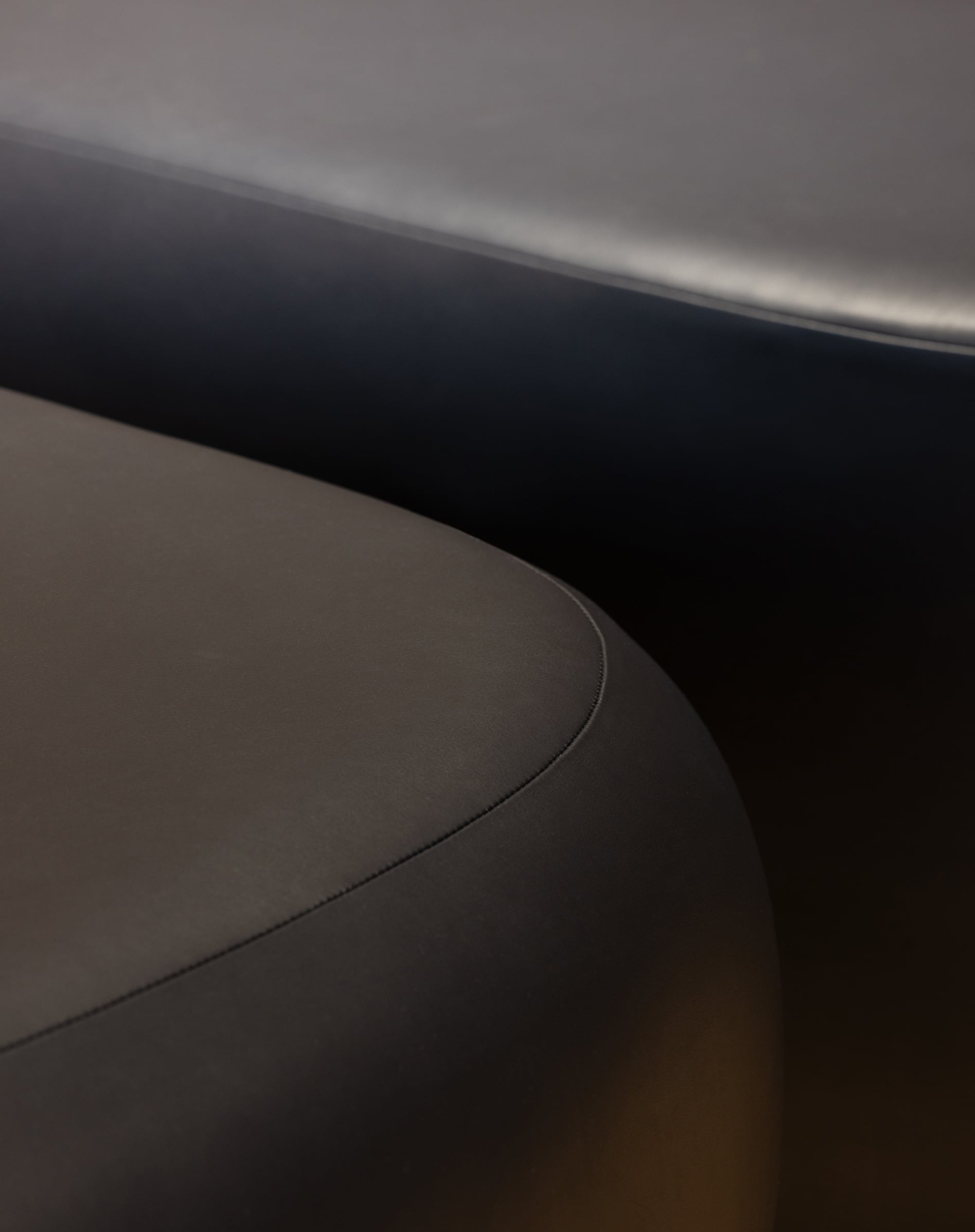 Polène’s commitment to savoir-faire is emphasized in the ancestral Japanese technique of Urushi lacquer. Meticulously applied by hand, this technique gives a smooth, glossy appearance to all the furniture, which take the shape of deep blue stones. A special hue developed for the custom-made leather seats.