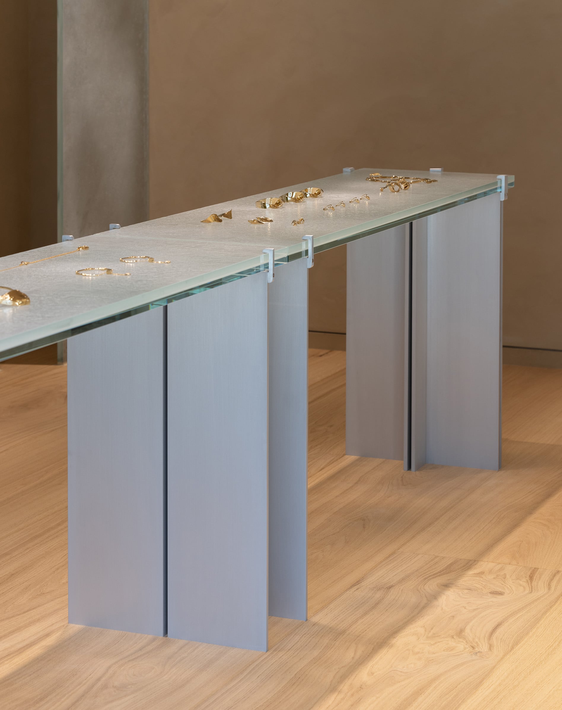 Echoing the New York boutique, the house again pays tribute to the exceptional work of designer Jorge Penadés with a checkout counter made from compressed leather off-cuts.