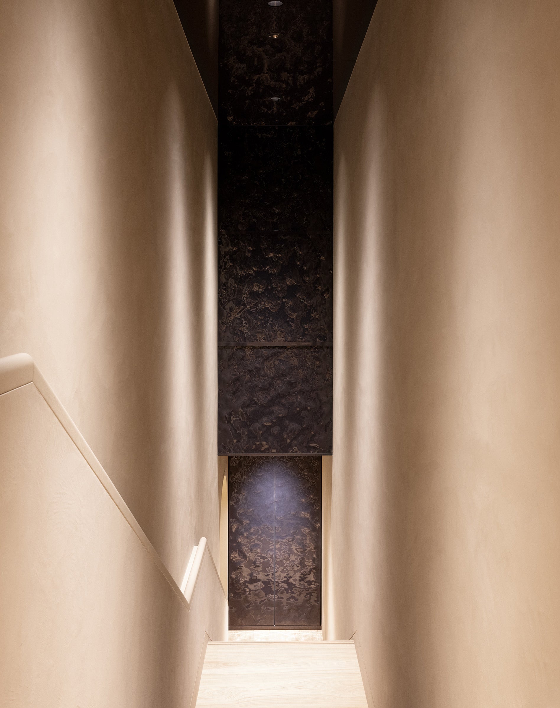 The boutique’s interior draws inspiration from the outdoor world throughout, with its Japanese oak flooring, rounded pebble-shaped leather lighting and natural-toned walls.